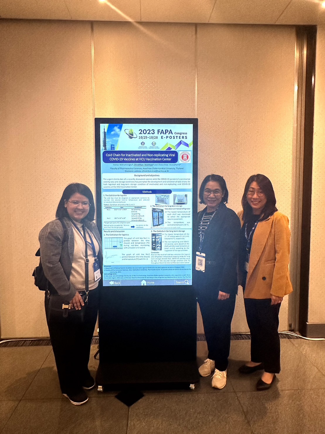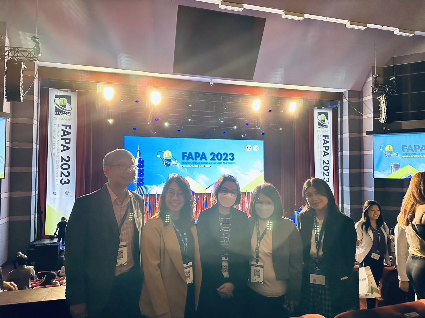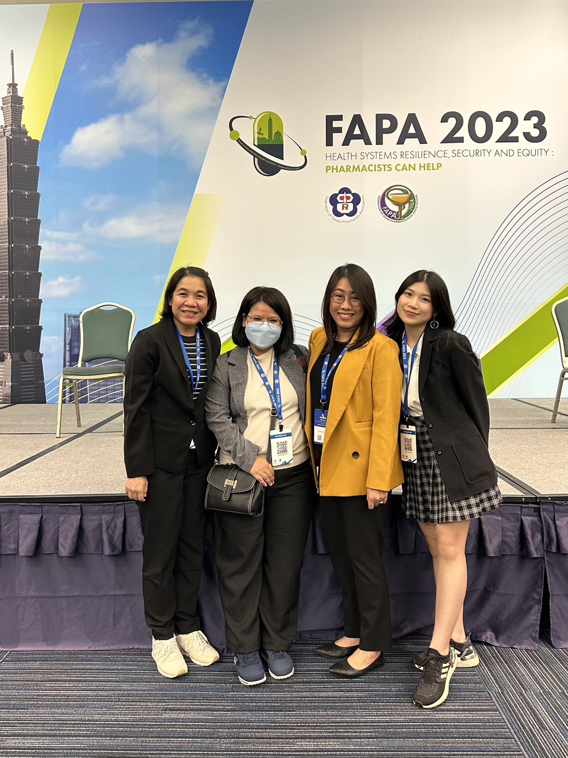 อ.ภญ.หรรษา มหามงคล คณบดีคณะเภสัชศาสตร์ ผศ.ดร. ชวาลินี อัศวเหม รองคณบดีฝ่ายวิชาการ อ.ดร. วิรัตน์ ทองรอด อ.ดร. จิรัฐติกาล ไม้จีน และ นศภ. ชวัลญา ธำรงลีฬหา นักศึกษาชั้นปีที่ 6 เข้าร่วมงานประชุมและนำเสนอผลงานวิชาการ ในงาน FAPA (The Federation of Asian Pharmaceutical Associations) 2023 Congress – Health System Resilience Security and Equity: Pharmacists can Help งานประชุมวิชาการระดับนานาชาติ ซึ่งมีเภสัชกรจากประเทศสมาชิกเข้าร่วมรวม 24 ประเทศ ณ The Taipei International Convention Center เมืองไทเป ประเทศไต้หวัน ระหว่างวันที่ 26-28 ตุลาคม พ.ศ. 2566